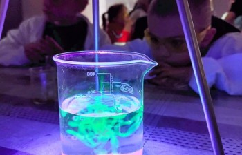 Dzieci zdobyły wiele ciekawych informacji na temat wulkanów, oglądały i dotykały różne minerały, a także mogły poczuć lekkie trzęsienie ziemi dzięki specjalnej platformie. Wzięły też udział w warsztatach "Zagadki fluorescencji". Zachwytom nie było końca.